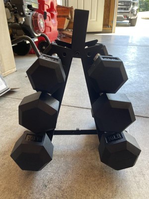- Foldable weight stand comes preassembled so you can keep your dumbbells organized