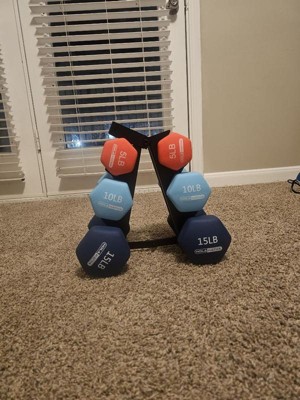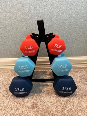 [This review was collected as part of a promotion.] I recently received in the Neoprene Dumbbell Weight Set with Storage Rack, and I couldn't be happier with my purchase! This set is incredibly versatile, allowing me to gradually increase my strength and endurance with the 5, 10, and 15-pound options. The neoprene coating provides a comfortable grip and prevents slipping, making each workout session safe and efficient. Plus, the included storage rack keeps my space organized and tidy. Whether I'm toning my arms, sculpting my shoulders, or adding resistance to my cardio routine, these dumbbells are the perfect companion. I highly recommend them to anyone looking to enhance their fitness journey!