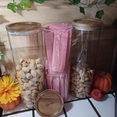 [This review was collected as part of a promotion.] I love these glass storage canisters from Joy Jolt. They are made very well and look beautiful on any counter or shelf. The airtight wooden lid comes with silicone gasket that keeps the freshness in. I simply love them!