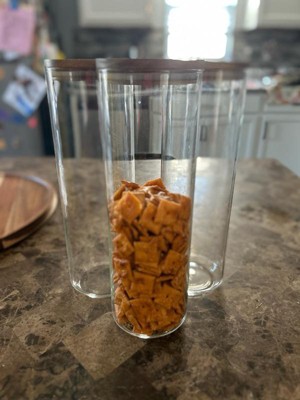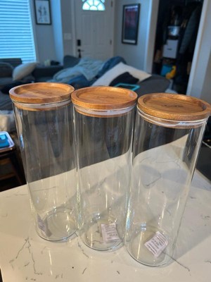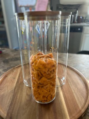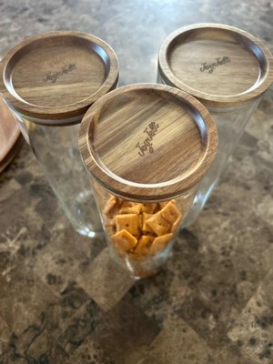 For the ingredients that need a little extra room—whether you're stocking up or staying organized. This trio of glass canisters with wood lids are perfect for spaghetti, breadsticks, and long grains (no snapping or squeezing needed!). Big on storage, sleek in style.
