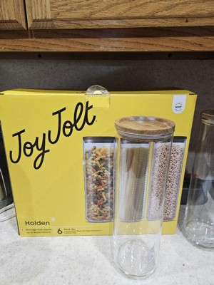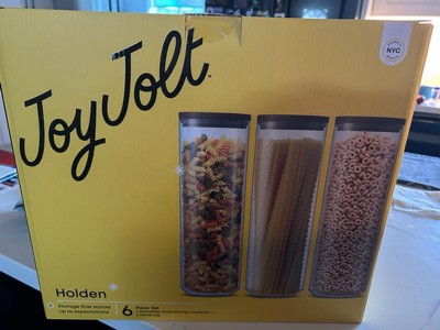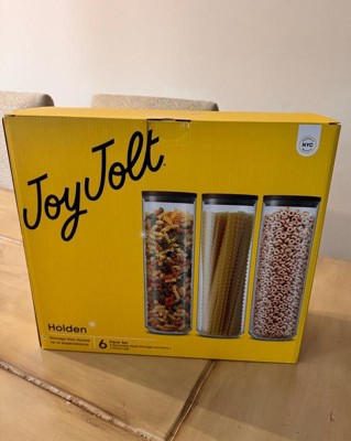[This review was collected as part of a promotion.] I was excited to unbox these as the box was sturdy and the tape said JoyJolt which excited me as I forgot what I ordered! I was surprised at the size of these as they are tall and hold a lot, but fit perfectly under the counter or in the pantry. I was able to store three pounds of spaghetti with room to spare! I do wish they had some labels as I may forget what's inside, but those can easily be procured. They do feel a little thin so I ended stashing them in my pantry out of reach of little hands.