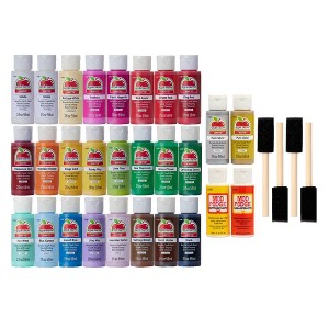 - CONVENIENT SIZE - This Apple Barrel Acrylic Paint Set comes with 2 fl oz paints great for basecoating, stenciling, and so much more. Mod Podge Matte and Gloss also come in a convenient 2 fl oz size. The 4 foam brushes each measure 1 inch. The colors included in this set are: Apple Barrel Antique White, Bright Magenta, Fuchsia, Red Apple, Bright Red, Flamenco Red, Flag Red, Pumpkin Orange, Burnt Umber, Kings Gold, Sunny Day, Lime Tree, Green Clover, New Shamrock, Christmas Green, Key West, Blue Cotton, Award Blue, Lilac Mist, Lavender Sachet, Nutmeg Brown, Black, Pure Silver, Pure Gold, and White x 2