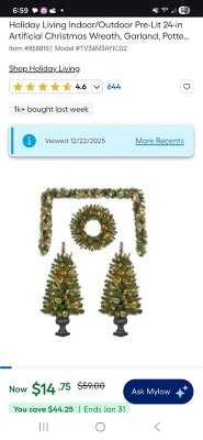 - Includes (1) 24-inch Wreath, (1) 9-foot Garland, and (2) 19-inch X 19-inch X 3.5-feet Potted Trees