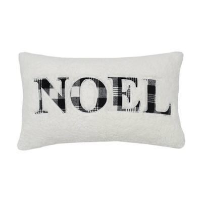 14"x24" Oversized Noel Embroidered Lumbar Throw Pillow Ivory - Evergrace