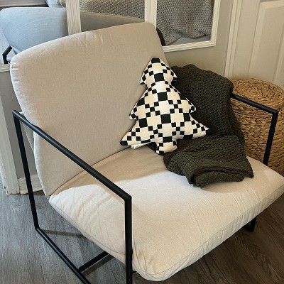 Accent your space in charming seasonal style with the Holiday Tree-Shaped Decorative Throw Pillow from Threshold™. This green throw pillow is designed in the shape of a holiday tree with neutral hues for festive, eye-catching style. Made of 100% cotton fabric with 100% polyester fiber filling, this novelty throw pillow is finished off with sewn-seam closures for a neat look.