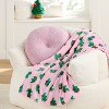 Wrap your baby up in the cozy comfort of this Plush Blanket from Cloud Island™. Made from 100% recycled polyester for a soft feel and snuggly warmth, this plush blanket helps keep your baby feel snug, making it perfect for nap time, stroller rides and more. Adorned with allover smiley-faced Christmas tree graphics on a light pink background, it's sure to add fun, festive cheer to their nursery decor.