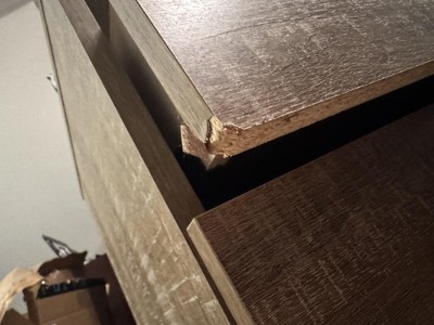Multiple corners of the dresser/drawers arrived damaged. (See pictures) gave it a 2 because the dresser overall seems sturdy.