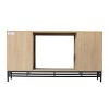 Ships in 2 seperate boxes. Design and functionality seamlessly unite with this TV stand. Basket weave texture creates a focal point in your living area, while the gray and black finish exudes tranquility and elegance. Push-to-open doors reveal adjustable shelves to keep your media essentials organized, crafting a sleek, hardware-free look. Whether you're elevating your entertainment space or leveling up your game room, this media console keeps your style perfectly on point.