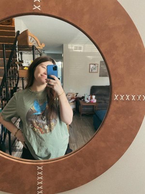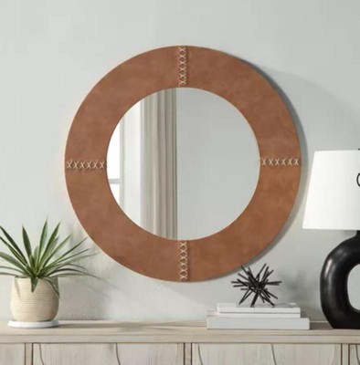 More than just a place to check your reflection, this mirror's unique faux leather design adds natural visual interest to your space. With its circular design and an intentionally broad frame, this mirror will add texture and visual weight to any wall, much like a framed piece of artwork. Add this mirror to your living room, bedroom, entry way or the end of a hallway for unique functional design.
