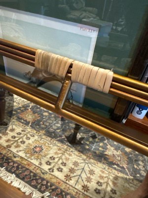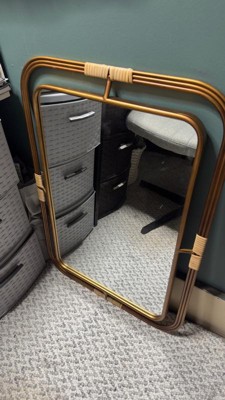 [This review was collected as part of a promotion.] This mirror is just okay. The rattan detailing started coming appear almost immediately. We took it out of the box and it started unraveling. Could probably fix with some glue, but I don’t want to have to do that with a brand new out of the box product. Aside from the poor rattan quality, this mirror is lightweight, more bronze than gold, and has nice detailing. Could be a great piece used for an art deco or MCM home if not for the rattan detail, which I feel is not needed.