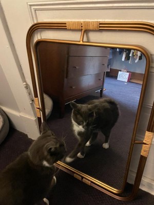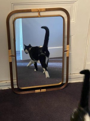 [This review was collected as part of a promotion.] As you can see, I haven’t hung up my mirror yet, but my cats are definitely enjoying it. The mirror was shipped and packed well, no damage whatsoever. It came with wall anchors for hanging, as well as hardware. The mirror seems well made, and is study. It’s made with real metal and rattan, and not a piece of plastic in sight. The design is very cute as well as neutral to match most decor. Bravo!