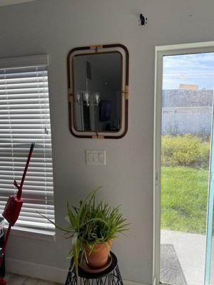 [This review was collected as part of a promotion.] Cute mirror and good size. I placed it at my doorway before leaving so I can do a quick check of my appearance before heading out. The rattan is nice material. Easy to hang and get setup. Recommend!