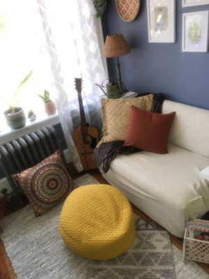 I purchased this beautiful colored pouf in June of 2020. I was so excited to see that it was just as beautiful in person as it was online. The disappointment came 2 months in when I started to notice the knitting stretch out as the filling got smaller, making it look deflated and because there is no zip or other opening, it cannot be fixed by restuffing it. Such a gorgeous piece but not made with longevity in mind.