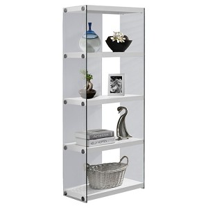 Spoil yourself with a chic tempered glass etagere that provides a perfect spot for candles, books, photo grams and other decor items. With 4 multi-functional, thick paneled display shelves in a glossy white finish, you'll be sure to add interest wherever you choose to place this accent display case. The 5-tier etagere is equipped with polished chrome accents for more elegance. Make this bookcase the new feature in your living space. Assembly is required.