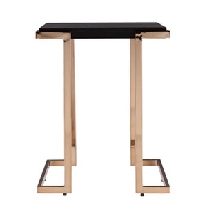 Modernize your living space with this stylish accent table. Architectural legs craft a sophisticated design while a black faux shagreen tabletop holds your coffee cup or cocktails. Tuck between a pair of cozy armchairs or slide alongside your sofa for a convenient tabletop when you need it. Complement your modern design when you bring home this elegant side table.