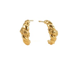 - These floral hoops are hand carved to perfection. Their elegant twists with floral accents are perfect for sleek, feminine styles. Available in 24K Gold Vermeil over Sterling Silver.