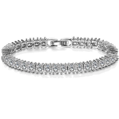 Looking for a tennis bracelet that is both stylish and functional? Look no further than our Cubic Zirconia Tennis Bracelet! This beautiful bracelet is made of white gold plated cubic zirconia and is adjustable, so it can be worn by anyone. It's the perfect addition to any outfit and will add some sparkle to your day. So why wait? Add this must-have bracelet to your jewelry collection today!