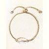 Make a style statement with this beautiful gold puka shell bracelet. Crafted with a unique and eye-catching design, this bracelet will add a hint of glitz and glamour to your look. The adjustable spring closure ensures you can easily adjust the size of the bracelet for a comfortable fit. This gold puka shell bracelet is the perfect accessory for any occasion. Add a touch of elegance to your look with this stunning bracelet!