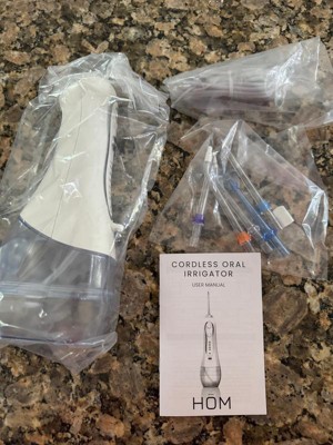 HOM Dental Cordless Oral Irrigator and Water Flosser - Teeth Cleaning Kit - With Four Dental Tips and 10 Ounce Tank (White)