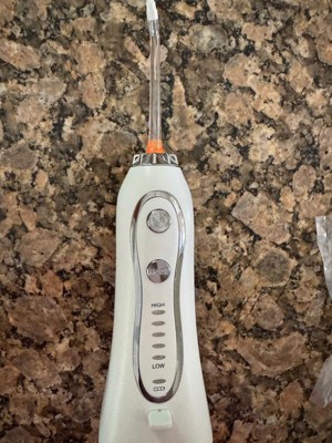 [This review was collected as part of a promotion.] This Oral irrigator is a must for anyone looking to properly take care of their mouth. It has a large easy to fill tank and comes with five pressure settings. It also comes with 5 specific use nozzles. From a tongue cleaning nozzle to an orthodontic nozzle there is one for everyone. My son has braces and really needed this to properly clean around the orthodontics. The battery life is great and I've only had to charge it once so far! Highly recommended!