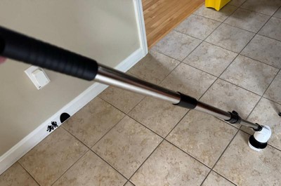 Perfect tool for bathrooms and any other tile floor. Collapsible pole, great brush heads and powerful too.