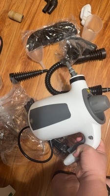 [This review was collected as part of a promotion.] I received this steam cleaner as part of a promotion to write an honest review. So far, I've used this twice. The first time I used the small brush attachment to clean my son's shoes. It did a great job of steam cleaning the area. The second ti.e I used it was to clean the Alcantara on my Mercedes steering wheel. I was able to pull out a lot of dirt and oil and woth the addition of some leather clea er, the steering wheel feels like new again. This steam cleaner holds a lot of water and it heats up very fast. I would definitely recommend this to anyone looking for a portable steam cleaner that won't break the bank.