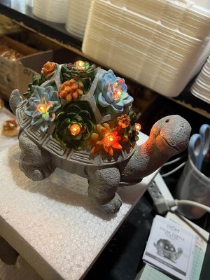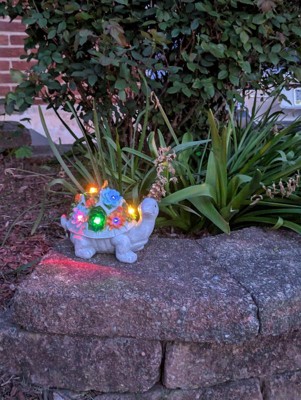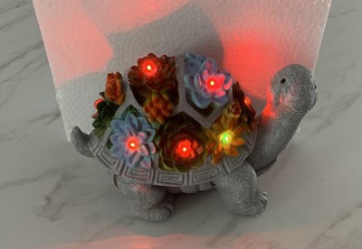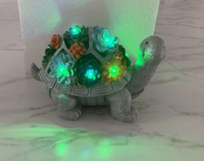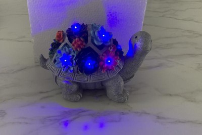 [This review was collected as part of a promotion.] The turtle is cute. The Dolores flowers add some color to your porch or landscape. It's weather resistant, so it’s ok in the rain. The LED lights glow beautifully at night The colors change on it as well. If you like turtles look into it. It’s solar so no wires, no hassle. Just place it in the sun and it does its thing. I was surprised at how long it stays lit. There are times when it glows from right at dusk well into the early morning. It looks like concrete or stone but it is plastic so it’s light weight. I have it on my porch right now but might put it out in the garden.
