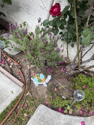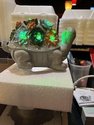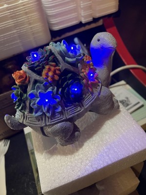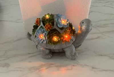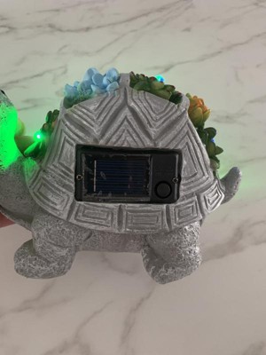 [This review was collected as part of a promotion.] This turtle seems cute but it’s a little smaller than I expected. I had also hoped that it was going to be ceramic or stone instead of plastic. It seems to have nice lights that are beautifully colored. I’m definitely excited to use this and have placed it in my garden. I am hoping it lasts for as long as it states in the package.