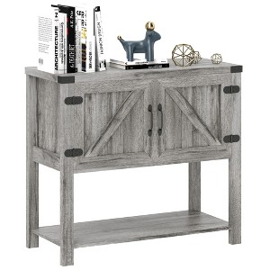 Featuring convenient use and elegant style, our HOMCOM cabinets for storage with doors perfectly meet your home storage needs. This farmhouse console table fits nicely with any decor and can be used in the living room, hallway, kitchen, home office, and dining room to create stylish additional storage. Constructed of solid wood frame, features 2 doors with exquisite handles, keeps your house looking tidy and clean. Add much-needed storage to your home with this accent cabinet!