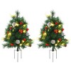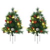 HOMCOM 2 FT Christmas Tree 2-Pack Outdoor Pre-Lit Artificial Pine Cordless with 24 Warm White Lights and Stakes