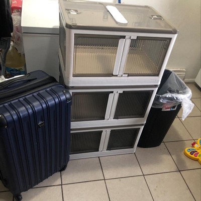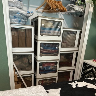 Good storage solution for a closet that didn’t have doors. I used both the larger bins and smaller bins. I can open each bin separately without moving or lifting the bin. Also, the bins rolls and I have them stacked.