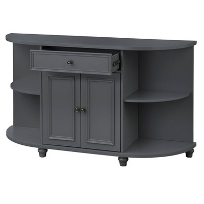 HOMCOM 59 Inch Farmhouse Sideboard Buffet Cabinet with Thick Top, Coffee Bar Cabinet with Sliding Barn Doors, Drawers, Adjustable Shelves, Gray Wash