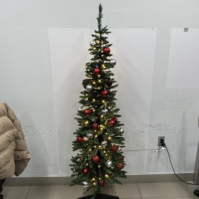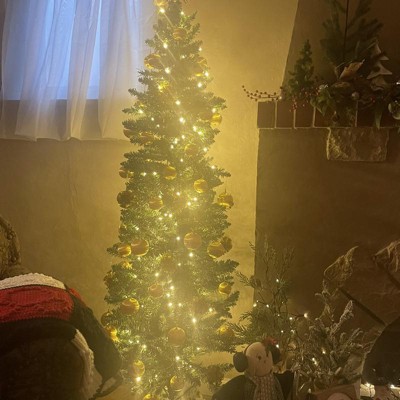 • 6-Foot Tall Pencil Design: This artificial pre-lit Christmas tree has 390 branch tips for a full appearance and a slim pencil design that will be a great fit in any space, it will be your holiday tree for years to come.