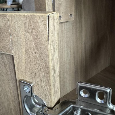 This cabinet took 4 hours to put together and after all that it isn’t a great piece. I found it to be very light weight and i don’t believe it will have longevity. The pieces have quite a bit of manufacture defects. Lamination defects and one piece was actually fixed with some kind of putty very poorly. The holes aren’t all drilled the same so it turns out off center. We disassembled and returned it. I would not recommend this piece at all.