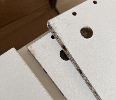 I bought this item based on Reviews of other items from the same brand since this one didn't have any reviews here. 1. The box for the shipping is way heavy 78 lb and I think the price is for the shipping cost. 2. Opening the box was way too many parts, also, some pieces were chipped and dirty (pictures) 3. When building it you have to be careful since the laminated part tends to chip too. Last the screws holding the door are so tinny (picture) that I don't believe will hold the door for long periods. I know could be improved.