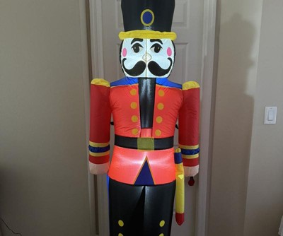 this item is great. only has one problem. He has to be stood up every time he is inflated, I don't mind but I run light shows so have to stand him up a few times a night. Otherwise great looking nutcracker inflatable.