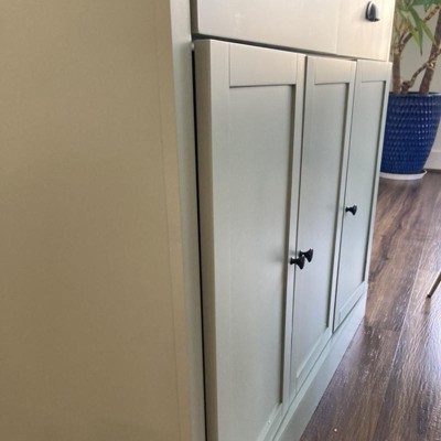 Completely a disappointment!!! The pre-drilled holes were not correct so the doors are on crooked and not flush with the frame. It was such a pain to put together, I don’t want to ask my husband to take it apart to return it. Such a let down on how beautiful it looks from the website to how utterly janky it looks in real life. Poor craftsmanship in the manufacturing process. We follow the 29 steps to put it together just to be so frustrated at the results.