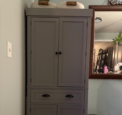 I gave only 1 star because I ordered a completely different pantry but received this one. The pantry itself is beautiful tho it's far too heavy weighing 108 lbs empty! It's also not deep enough so doesnt hold enough food.