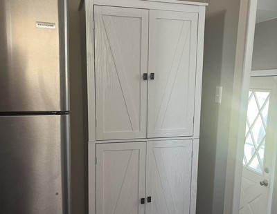 This pantry looks like it would be nice but it’s cheap. Cheap materials, and the assembly manual doesn’t match the pieces. You really have to “out think” the manual. I don’t recommend it. Spend the extra money and get a nicer cabinet.