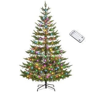 Step into the holiday spirit with a HOMCOM lighted Christmas tree, a cedar-shaped beauty with realistic PE needled crafted through integral injection molding for easy shaping. Revel in the festive glow its LED lights featuring warm white and colorful settings across 11 pre-set modes. Flame-retardant branches and a stable steel base ensure a safe and joyous season. Make your house a holiday home with HOMCOM.