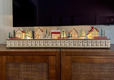HOMCOM Advent Calendar with 24 Drawers Countdown to Christmas, Lighted Wood-Effect Advent Calendar, Battery Operated for Holiday Decoration