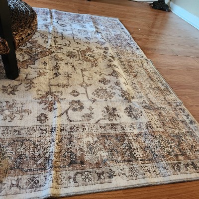 HOMCOM Area Rug 4x6, Non-Slip Machine Washable Rug, Boho Print Pattern Medallion Carpet for Living Room, Bedroom, Dining Room, Tawny Brown