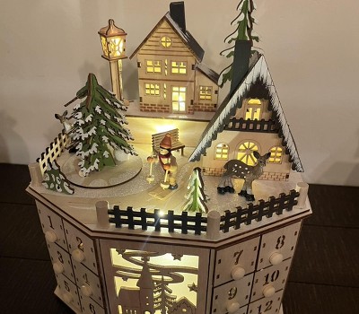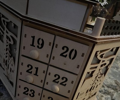 The advent calendar came with 2 drawers that say 6 and the 5 is missing. I noticed after disposing of the packaging and instructions. Also after having gone shopping for items that fit in these tiny drawers. Otherwise it's beautiful but now I regret the money spent. My elf on a shelf brings the advent calendars each year. Surely the north pole would never make such a mistake.