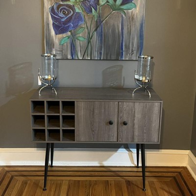 - Distressed Finish: Our wine cabinet's wood grain effect adds a rustic vibe to your home. No matter where it is placed, it can be integrated into your room's style. Use this sideboard in the living room for an accent cabinet, put it in the dining area as a coffee bar or buffet cabinet, or set as a wine bar for happy hour essentials.