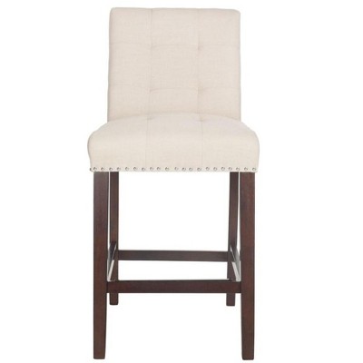 HOMCOM Counter Height Bar Stools Set of 2, Upholstered 26.75" Seat Height Barstools, Chairs with Nailhead-Trim & Tufted Back, Wood Legs, Beige