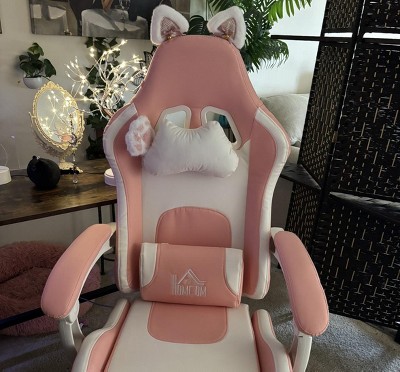 HOMCOM Cute Gaming Chair, Reclining Computer Chair with Footrest, Headrest, Lumbar Support, Height Adjustable Faux Leather Swivel Gamer Chair, Black