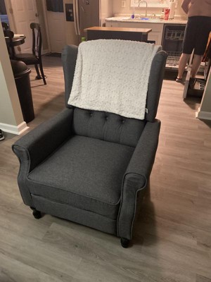 HOMCOM Fabric Upholstered Wingback Recliner, Tufted Back Linen Arm Chair with Footrest, Armrest, Padded Cushion, Dark Grey