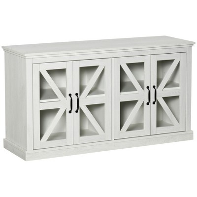 Revamp your living space with a HOMCOM farmhouse sideboard buffet. Organize your dinnerware, pots, and pans using the five compartments. You can tailor to your storage needs with three adjustable shelves inside the buffet. This kitchen sideboard has a sliding barn door and is bound to instantly upgrade your dining room, living room, or entryway with rustic charm and versatile storage. Whatever your storage needs, this buffet cabinet will house all your essentials with functional finesse.