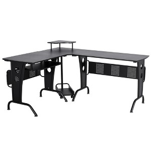 - Compact L-Shaped Corner Design: The space-saving, wrap-around style of this corner table offers plenty of surface space for home and office work-related or gaming activities.