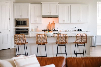 - Rattan Design: These kitchen counter stools boast faux rattan seats and backs, ensuring comfort during long sitting periods, suitable for leisurely weekend breakfasts. The hollow weave is breathable in stuffy air to keep you cool in hot weather.